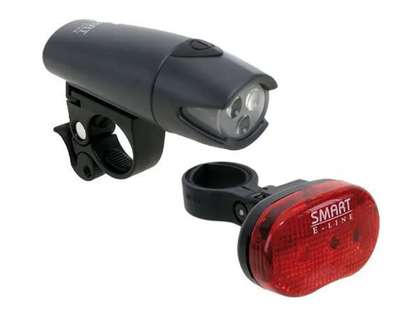 Smart Light belysningsset batteri för cykel med fram och baklyse. Framlampan lyser upp till 60 Lux LED och har en drifttid på upp till 50 timmar. Baklampan monteras på sadelstolpen med tillhörande fäste. Batterier och fästen igår i leveransen.
