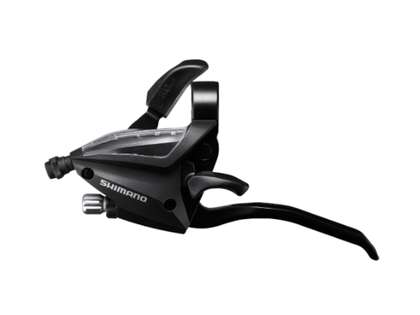 Växelreglage ShimanoSTI-reglage (för rakt styre) ST-EF500-L4A 3-delat EZ FIRE PLUS 1800 mm växelwire i leveransen. Växelreglaget passar på vänster sida av cykeln och är kombinerat med bromshandtag för 4 fingrar inbyggt i reglaget.