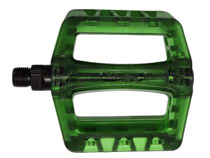 Cykelpedal Wellgo BMX Mörk Grön med 9/16 tum gänga, är en modern pedal i plast för BMX-cyklar med delat vevparti. Cykelpedalen passar även till andra typer av cyklar med 9/16 tums gänga i vevarmen och säljes parvis.