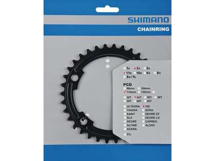 Kedjedrev 34 T Shimano 105 FC-5800 passar vevparit med 2 drev fram och 11 delat växelsystem bak. Med en bcd (bolt circle diameter) på 110 mm passar detta drev perfekt för Shimano 105 FC-5800 vevparti.